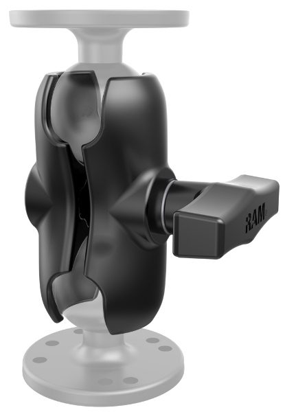• The RAM-201U-B, short double socket arm, has a socket at both ends that accommodates 1.5\” ball bases. A single spring inside the arm opens the end sockets, allowing you to pivot the ball and socket connection. This socket technology allows for almost infinite adjustment and perfect viewing angles.