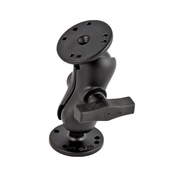 - The RAM-101U-B consists of a short double socket arm and two 2.5″ diameter round bases with the universal AMPS hole pattern. Designed into the mount is a 1.5″ diameter patented rubber ball and socket system with adjustment points at both socket ends of the arm. Rubber ball and socket technology allows for almost infinite adjustment and perfect viewing angles.High quality materials insure your device is safe, secure, and within easy reach. RAM’s patented design also dampens shock and vibration helping to extend the life of your device.