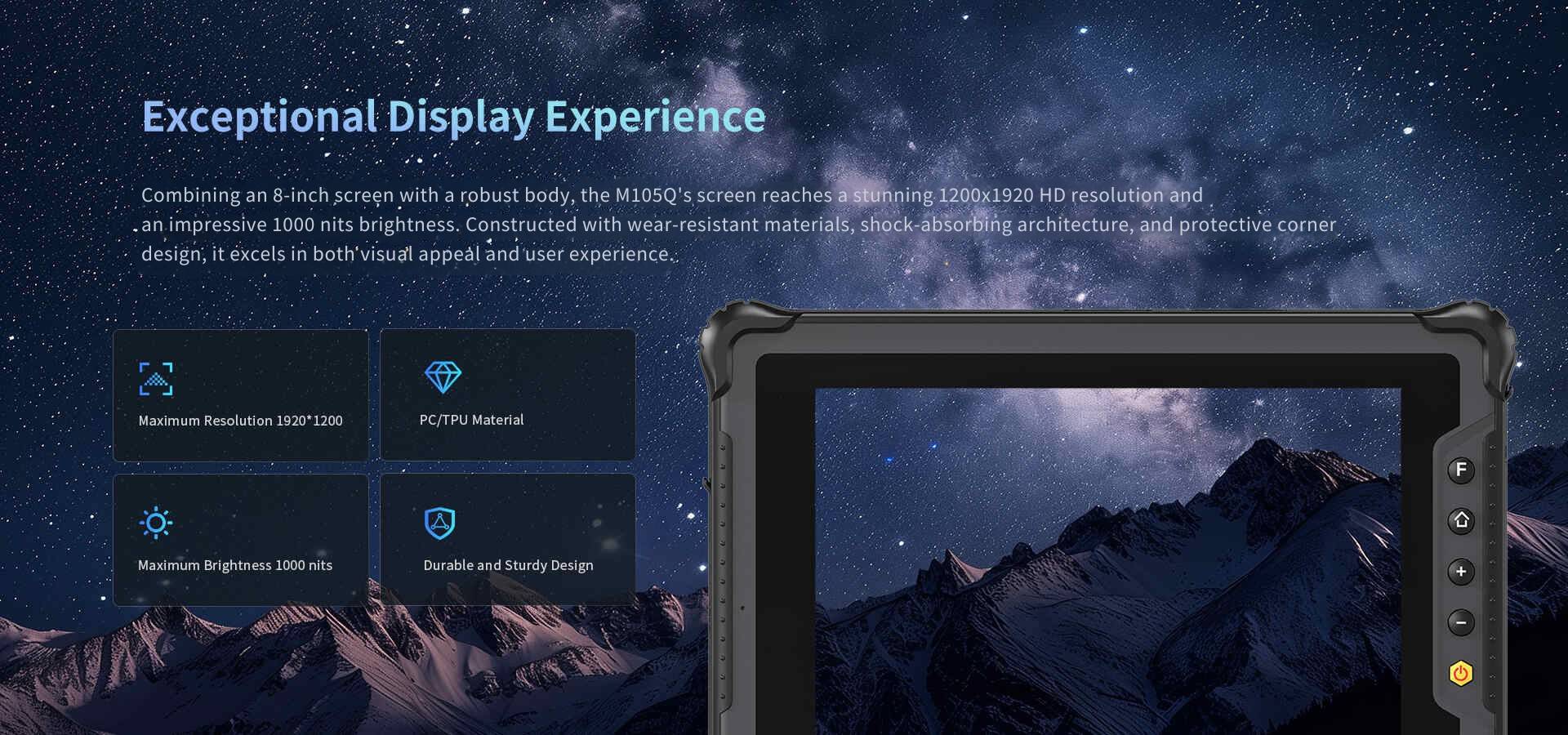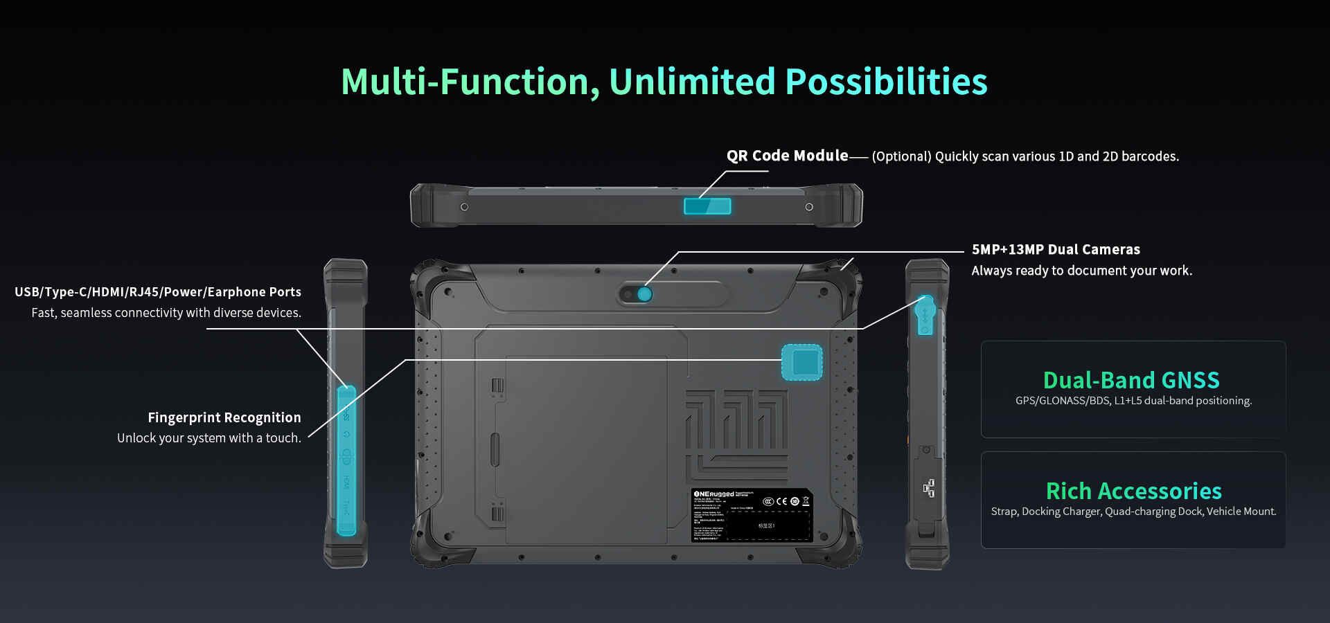 The ONERugged M105Q is a high-performance, 10.1-inch rugged Android tablet designed for demanding industrial and outdoor environments, such as manufacturing, logistics, transportation, and fieldwork. As part of ONERugged’s latest lineup of military-grade devices (a brand under Emdoor Info), it emphasizes durability, advanced connectivity, and all-day productivity, backed by a 3-year warranty. It’s particularly suited for data-intensive applications like real-time vision inspection, automated production control, and predictive maintenance in smart manufacturing.