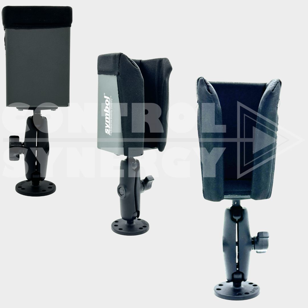 At its base, the holder integrates seamlessly with the renowned RAM Mount system, featuring a standard RAM ball-and-socket joint (C-size compatible) for unparalleled versatility. This allows 360° rotation and multi-axis adjustability, so you can position the scanner at the perfect angle—whether mounting it to a forklift arm, vehicle dashboard, workstation desk, wall bracket, or even a tripod. The included round base plate with pre-drilled holes supports easy attachment to flat surfaces using standard hardware, and the vibration-dampening ball system absorbs shocks from rough terrain or heavy machinery, extending the life of both the holder and your scanner.
