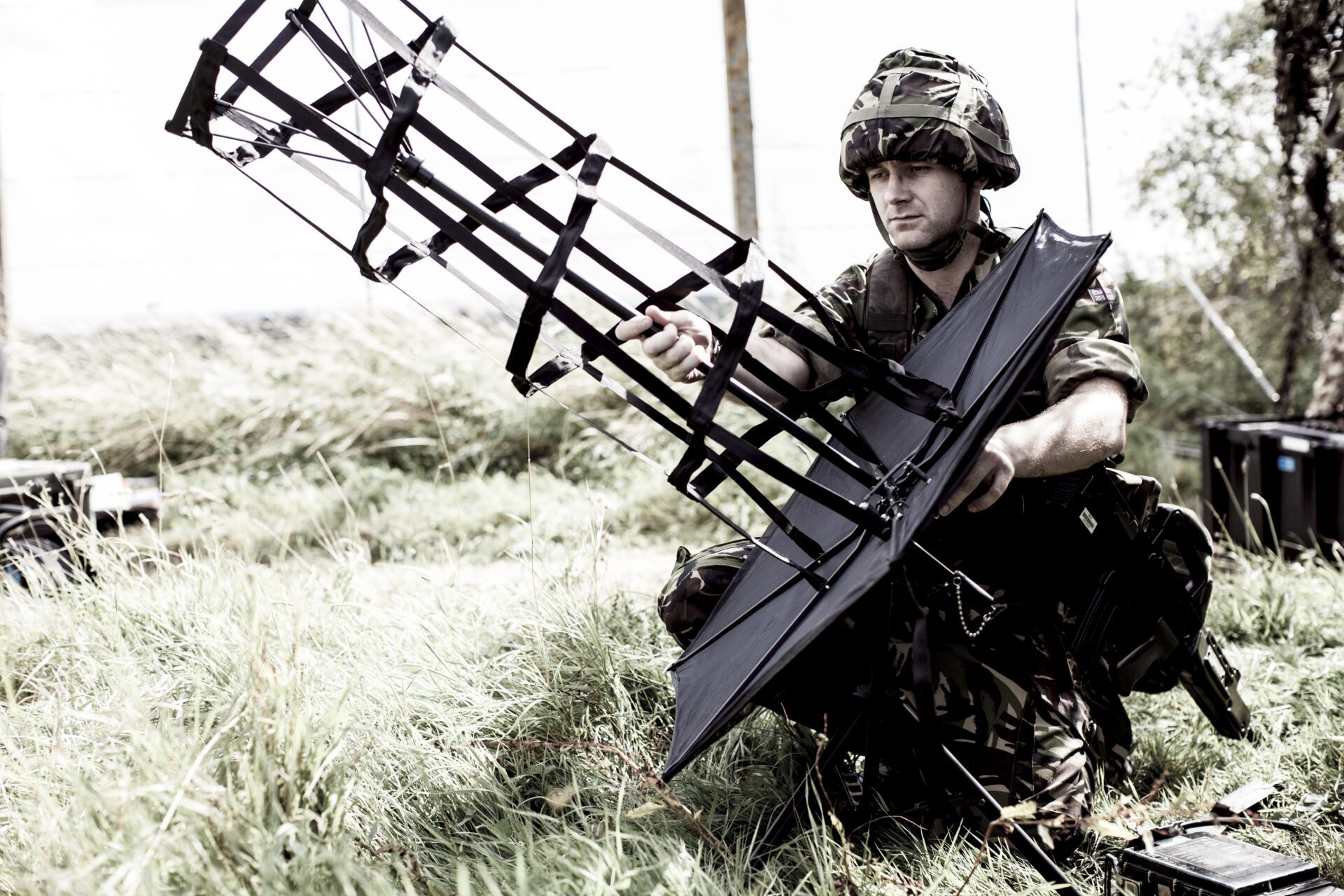 Circulalrly polarized High Gain Fixed UHF Satcom Antenna, Rapid Deployment communications.